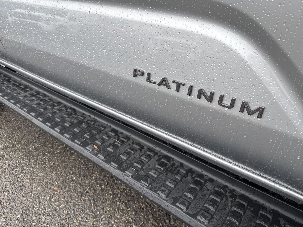 - Dark-chrome tri-bar grille; gloss-black mirror caps and door handles; color-keyed overfenders and rear spoiler; gloss-black "PLATINUM" and "4RUNNER" badges