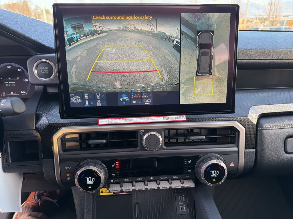 - Integrated backup camera display with projected path