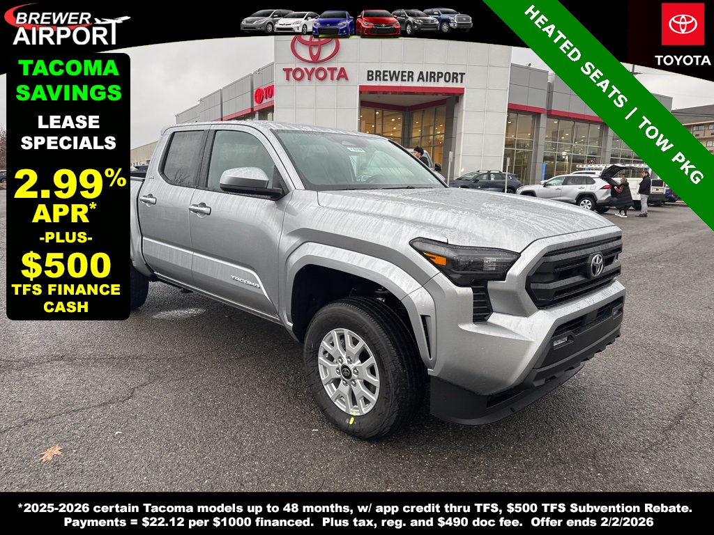 Qualified lessees can lease a new 2026 Tacoma 4WD Double Cab SR5 L4 8AT Model 7540 for $259 per month for 39 months with $4,999 Due At Signing. Based on 10,000 miles/yr. Security Deposit waived. Lease excludes tax, title, license, registration fees, and dealer options and charges.