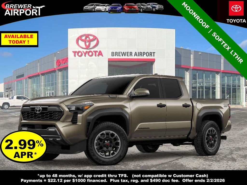 Qualified lessees can lease a new 2026 Tacoma 4WD Double Cab TRD OFF RD L4 8AT Model 7544 for $339 per month for 39 months with $4,999 Due At Signing. Based on 10,000 miles/yr. Security Deposit waived. Lease excludes tax, title, license, registration fees, and dealer options and charges.